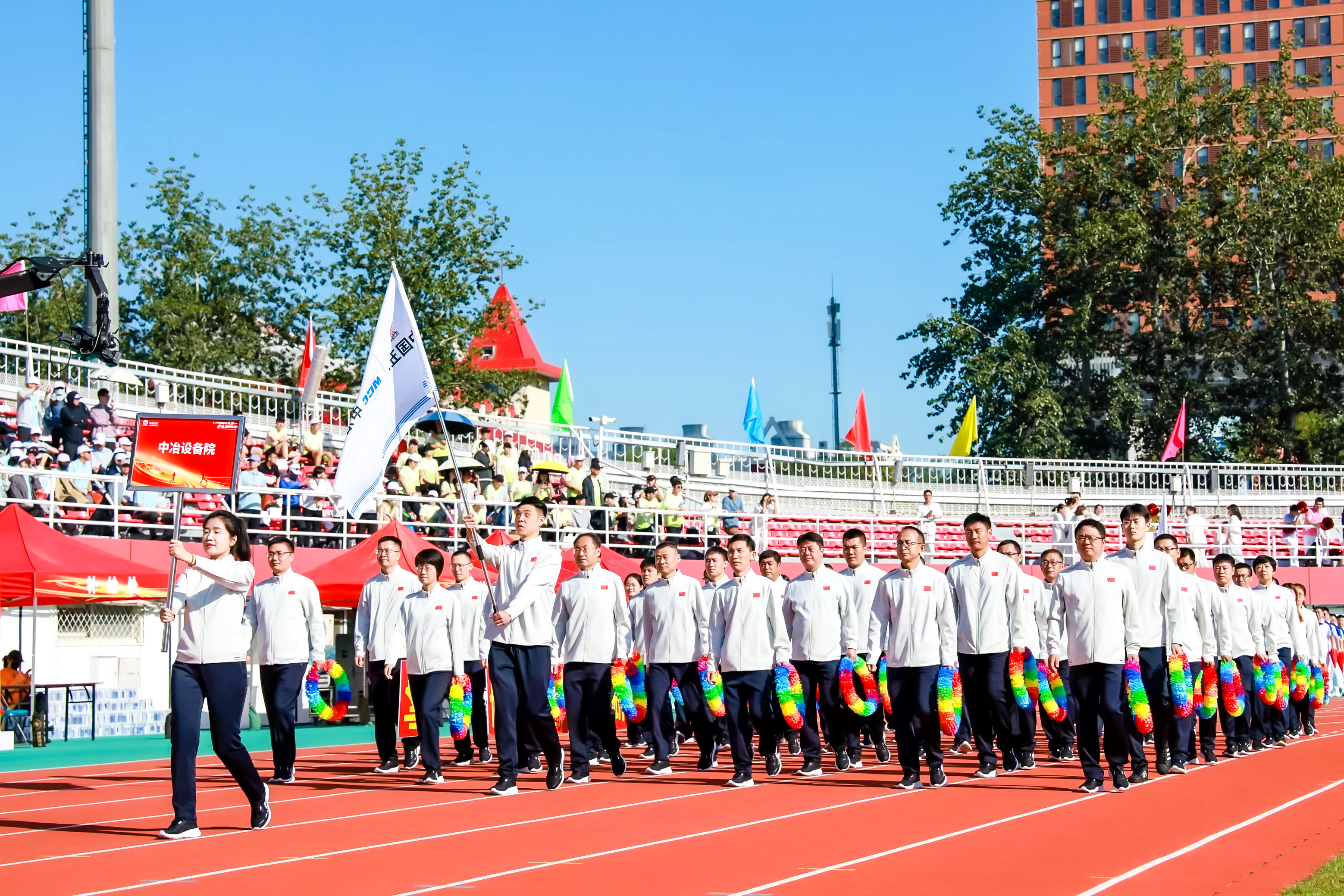 中冶設(shè)備院全體班子成員、各部門各單位運動健兒共計70余人參加此次運動會。開幕式上,公司方陣步伐鏗鏘、意氣風(fēng)發(fā),“創(chuàng)新引領(lǐng)、勇攀高峰”口號響徹碧空,隊員們手擎七彩花環(huán)明艷律動,同心共賀集團公司75周年華誕。