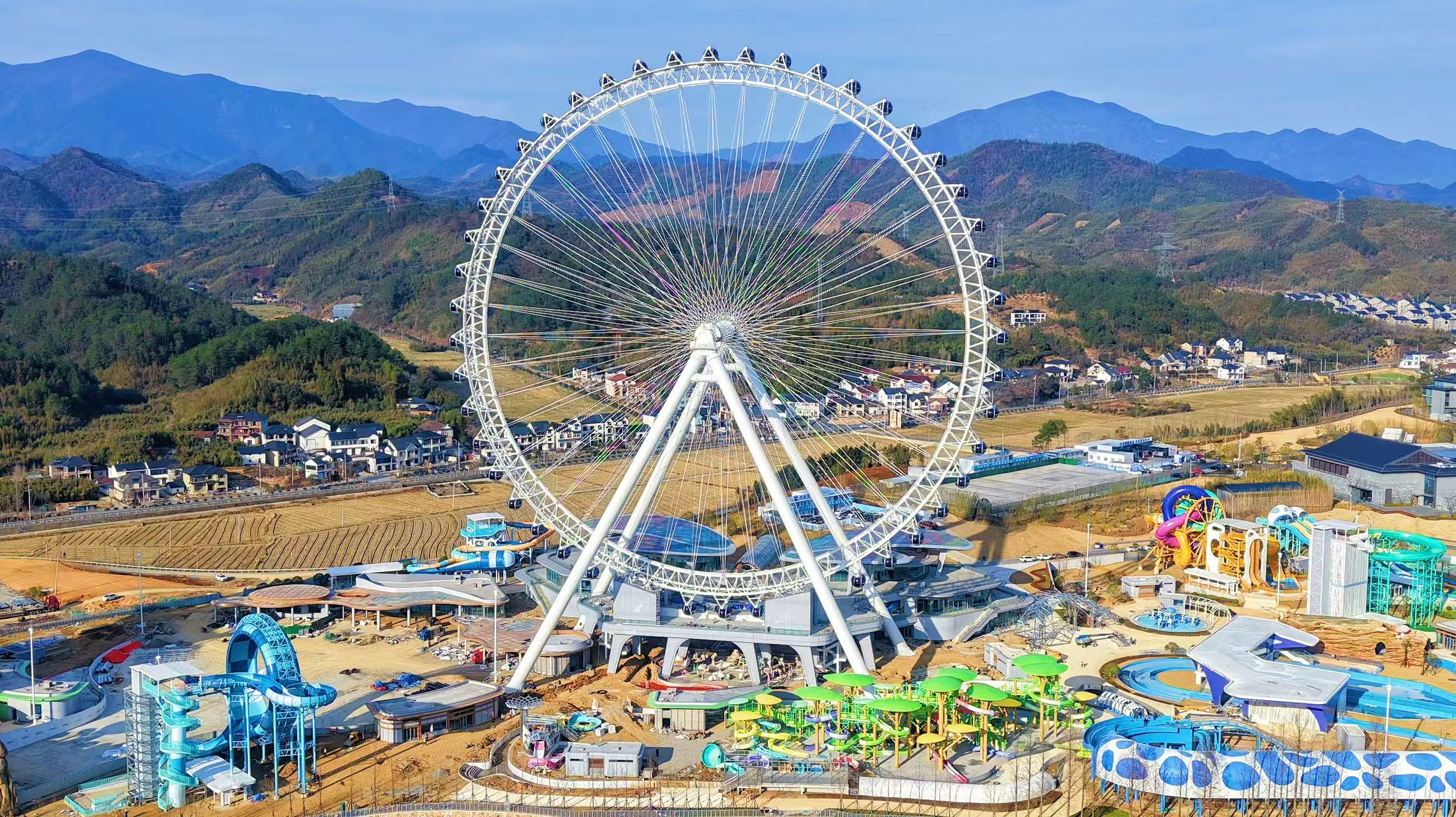 作為天目山未來(lái)谷——水世界的核心設(shè)施,該摩天輪總高達(dá)131.4米,象征著“一生一世”的愛(ài)情美好寓意,轉(zhuǎn)輪采用全鋼索結(jié)合三管桁架式結(jié)構(gòu),配備48個(gè)橢圓形高端轎廂,每個(gè)轎廂可容納12人,單圈運(yùn)轉(zhuǎn)時(shí)間約30分鐘,滿(mǎn)載可同時(shí)接待576名游客,建成后將成為杭州市新地標(biāo),為帶動(dòng)長(zhǎng)三角地區(qū)旅游發(fā)展作出積極貢獻(xiàn)。