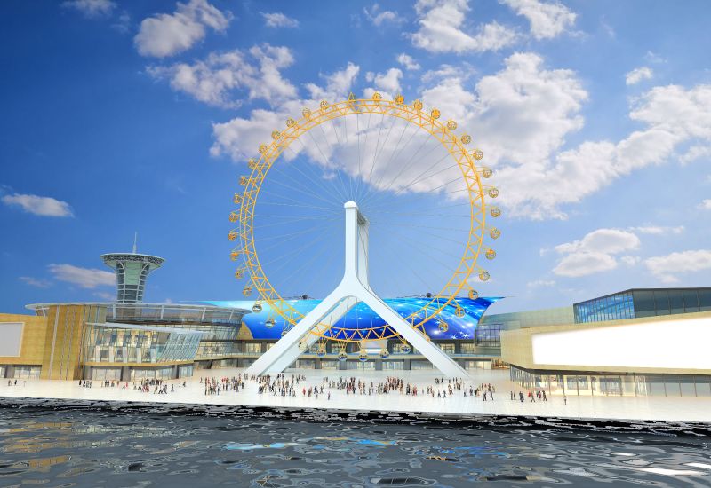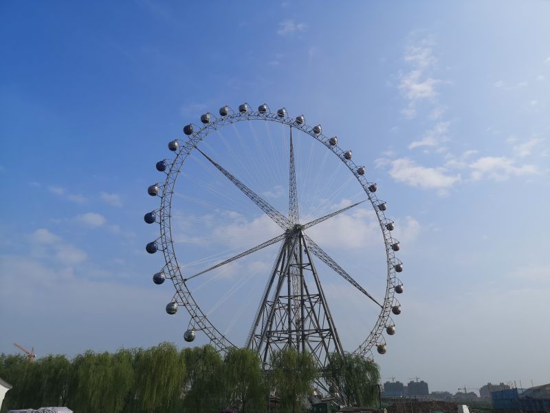 項(xiàng)目亮點(diǎn):該設(shè)備是國(guó)內(nèi)第三臺(tái)108米人字支撐全拉索結(jié)構(gòu)高端定制摩天輪。